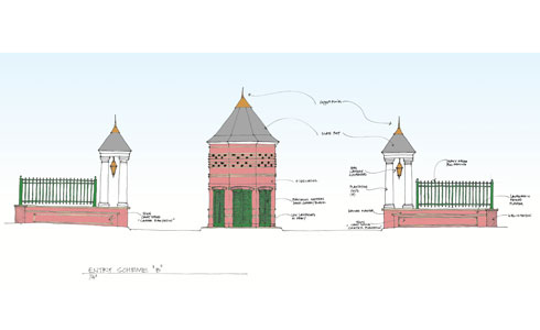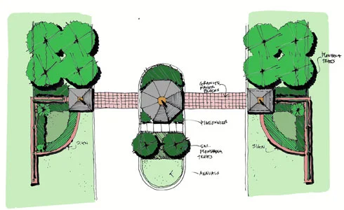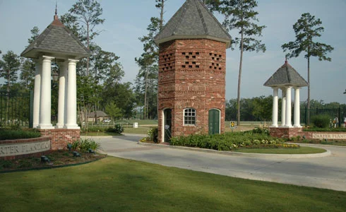 Having designed a successful pool for Carter Plantation Golf Community, located in Springfield, La, Dufreche-Perkins & Associates were again contacted by the client to develop an entry scheme for the upscale neighborhood's main entry. A formal gatehouse was designed along the lines of a traditional southern pigeonnier, and formal array of pergolas and fences were installed flanking the entrance boulevard. An extensive lighting plan was implemented, as were landscape and irrigation designs. Street-trees were also installed in order to enhance the sense of arrival. Our office provided construction administration services throughout construction.