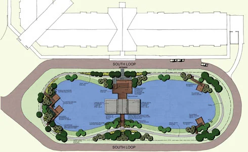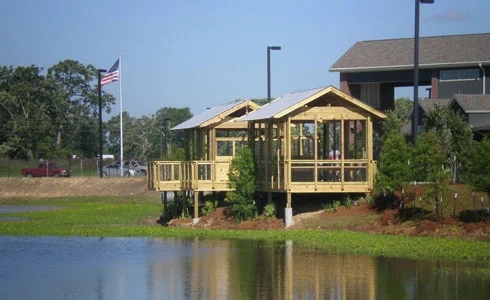 Holly and Smith Architects approached Dufreche-Perkins & Associates with a request to provide design input for an outdoor student area built over an existing retention pond, for use as a hands-on classroom area. Additionally, our firm provided Construction Documents for this facility. Our firm produced comprehensive plans for the construction of a facility to provide students with a safe and focused environment to explore the natural setting of the pond area. Terraced outdoor seating was incorporated into the banks of the pond, as well as barrier free access from the entry area to the classroom area. A planting plan was produced which incorporated native flora into a “natural” layout, intended to have the feel of a naturally occurring landscape.
