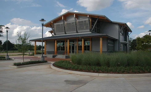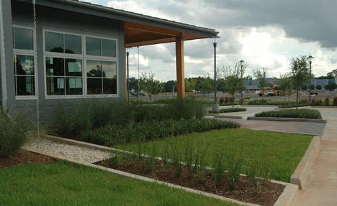 Holly and Smith Architects approached Dufreche-Perkins & Associates to provide Landscape Architecture for this new bank building. A specific effort was made to set this unique building apart from its local peers by providing a slightly unconventional landscape setting. Liberal use of stone and ornamental grasses was made to provide a palate of texture not often seen locally. The building’s location at a traffic intersection provides a high-visibility setting to display the dramatic combination of architecture and vegetation.