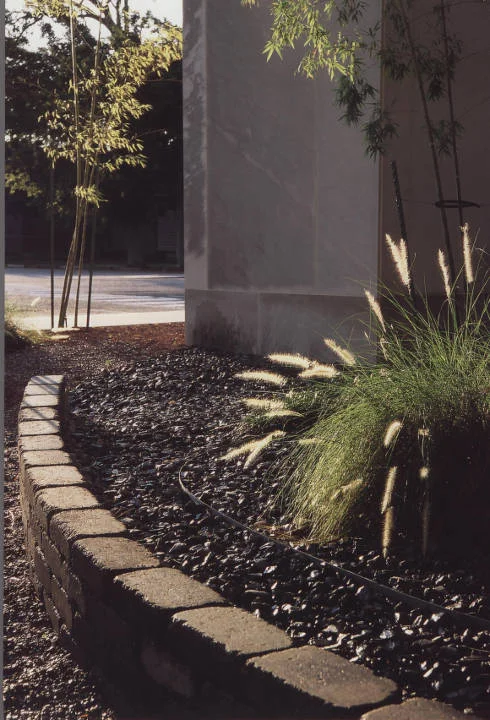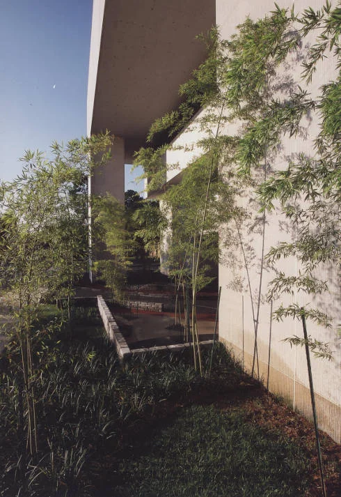 The landscape plantings at the entrances feature timber bamboo which grows to a height of 60 feet.